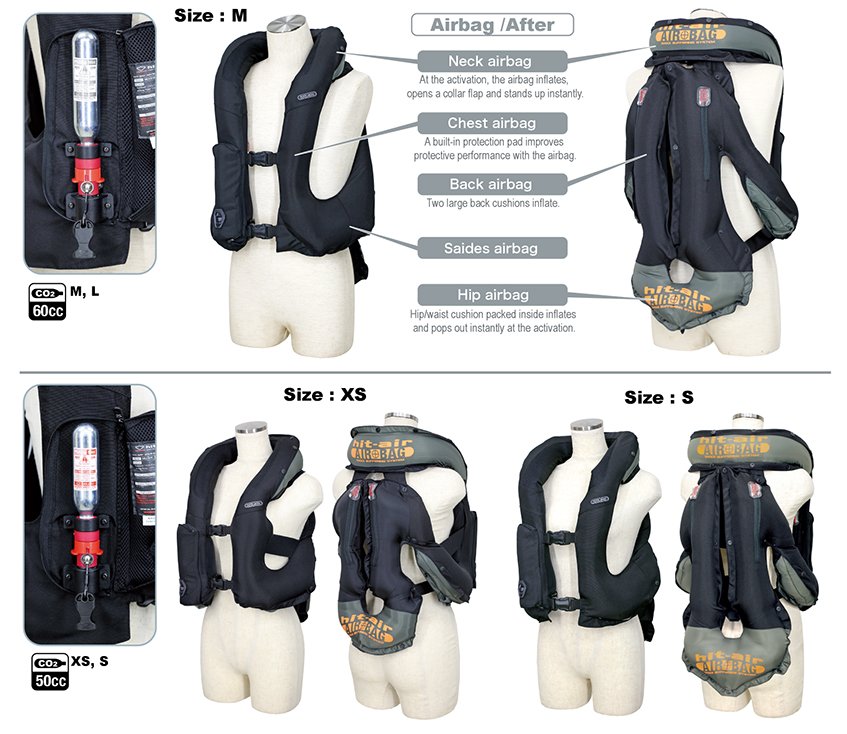 new Hit Air Pro 3, like the Pro Plus, has larger airbags than the new SV3 and the original lightweight Hit-Air vest and the airbags deploy just as